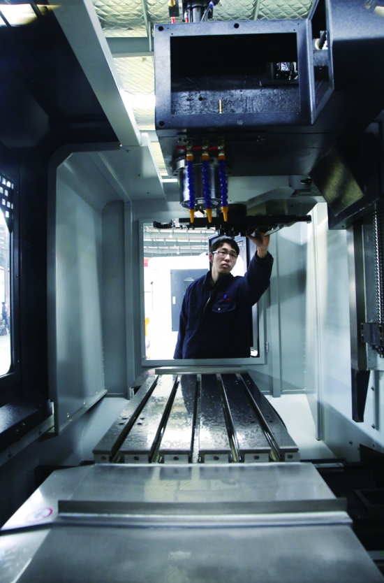 昨日,浙江永力達(dá)數(shù)控機(jī)械有限公司,一名工人正在調(diào)試新機(jī)器。“這是我們公司新研發(fā)的數(shù)控鉆攻中心,今年公司一共研發(fā)出4款,剛剛通過驗(yàn)收,下個(gè)月就投入市場。”該公司辦公室主任鄭勇介紹,新的機(jī)器轉(zhuǎn)速更快,定位精度更高,效率提高至少70%。記者 廖崢艷 攝