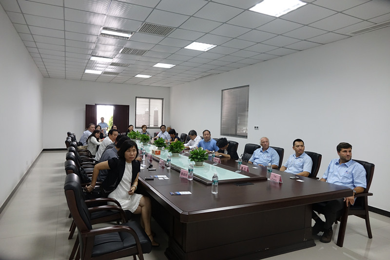 圖3 來訪嘉賓在公司會(huì)議室與公司董事長(zhǎng)、衢州市臺(tái)辦主任吾炳才進(jìn)行座談交流。