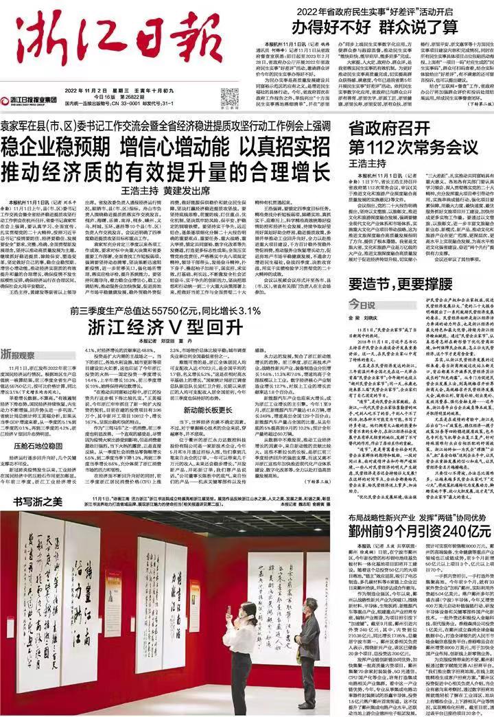 浙江經(jīng)濟V型回升 轉(zhuǎn)自2022年11月2日浙江日報頭版